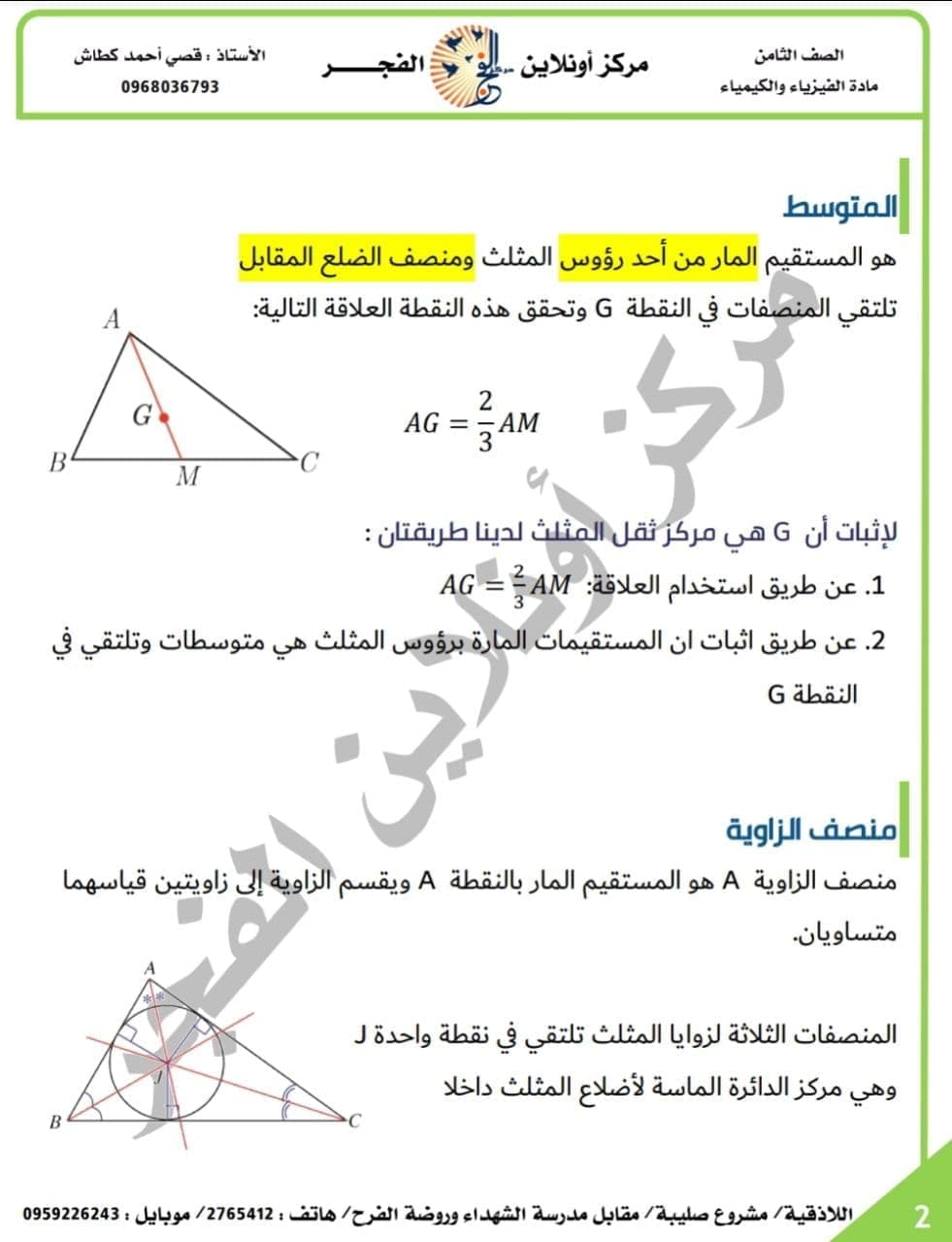 أهم افكار الهندسة البحث الثالث للصف الثامن المنهاج السوري