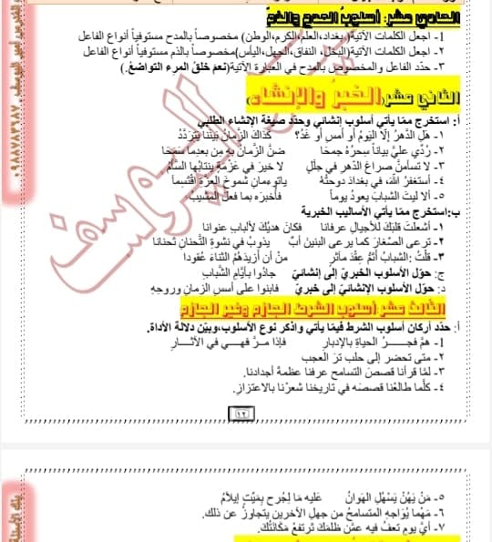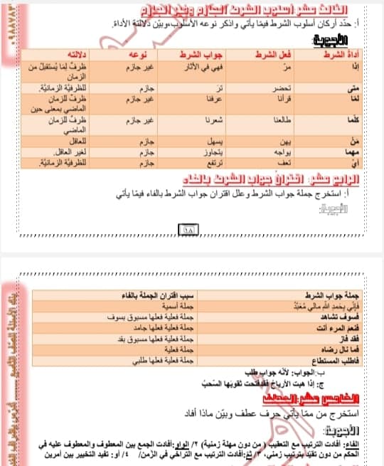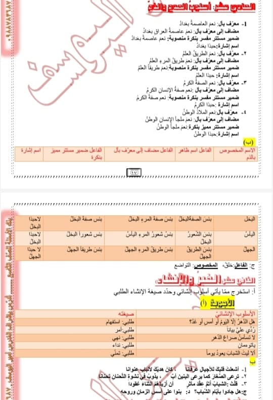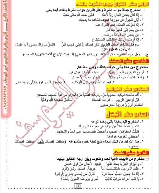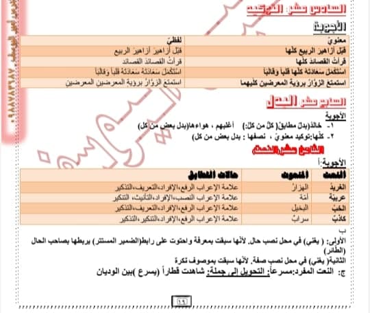 أوراق عمل في قواعد الفصل الثاني عربي مع الأجوبة تشمل الصيغ الوزارية كافة للتاسع المنهاج السوري
