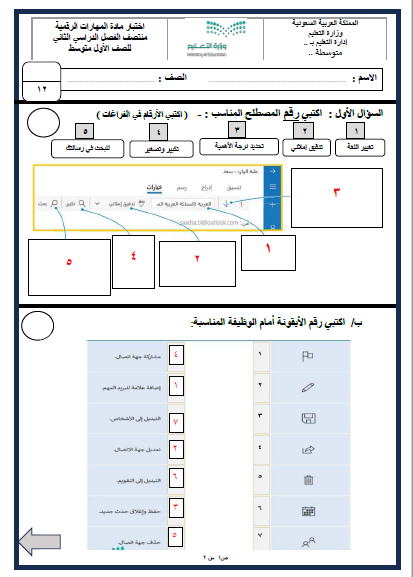 اختبارات المهارات الرقمية أول متوسط الفصل الثاني