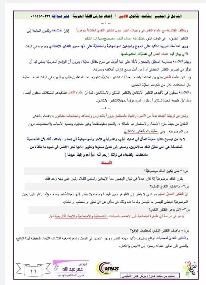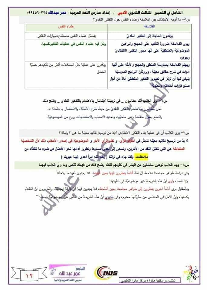 البحور للأدبي مع درس القراءة المنهج النقدي عربي بكالوريا المنهاج السوري