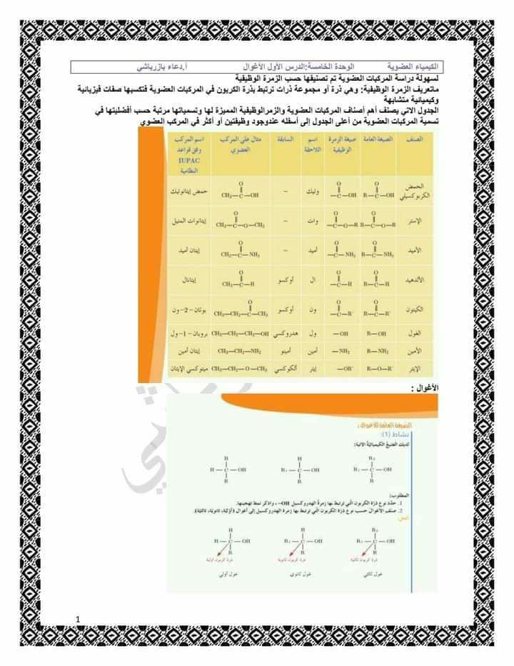 الوحدة الخامسة الدرس الأول(الأغوال) كيمياء بكالوريا المنهاج السوري
