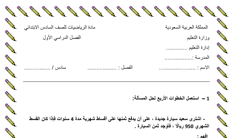 اوراق عمل رياضيات سادس ابتدائي الفصل الاول 1446