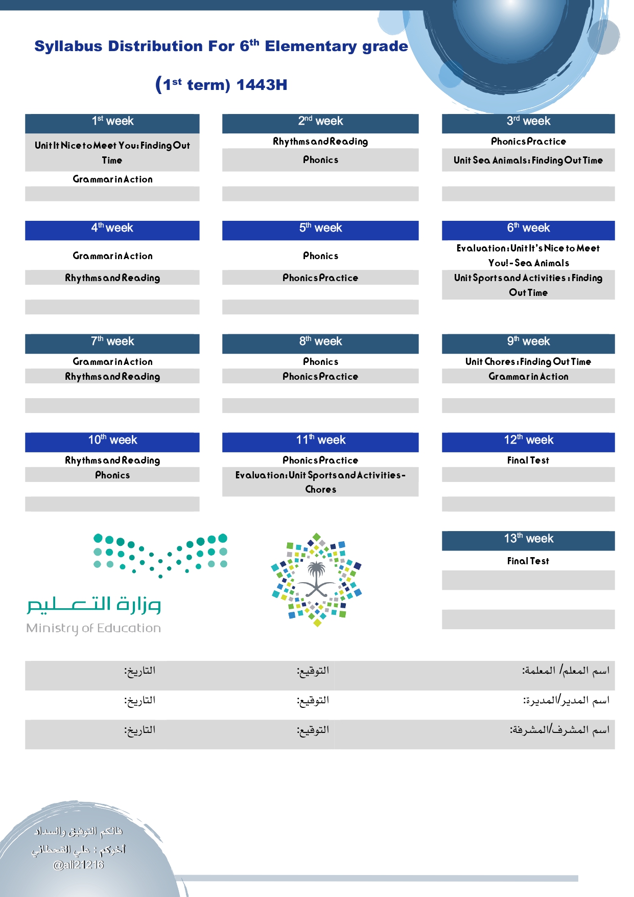 توزيع منهاج الإنجليزي للصف السادس الابتدائي الفصل الأول 1443 هـ