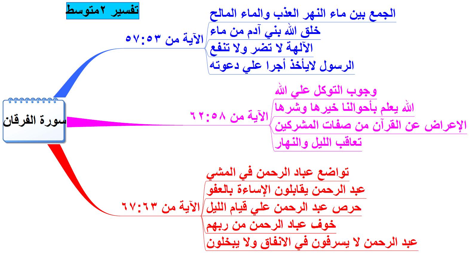 خرائط ذهنية مادة التفسير الثاني المتوسط الفصل الثاني 1438 هـ