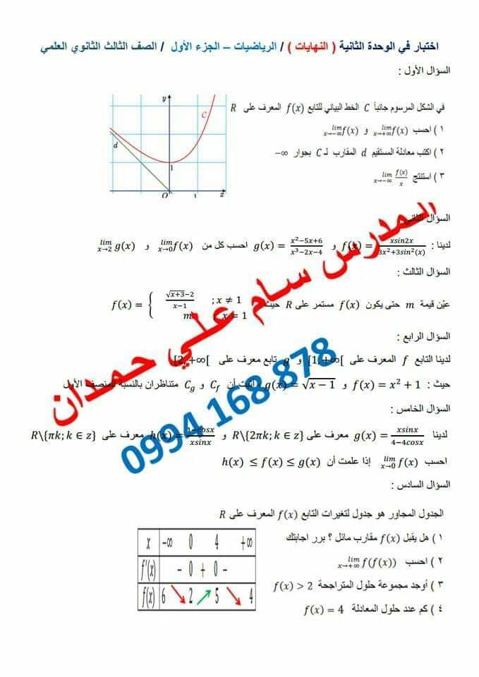 حلول النماذج الوزارية مع حل أسئلة الدورات السابقة رياضيات بكالوريا المنهاج السوري
