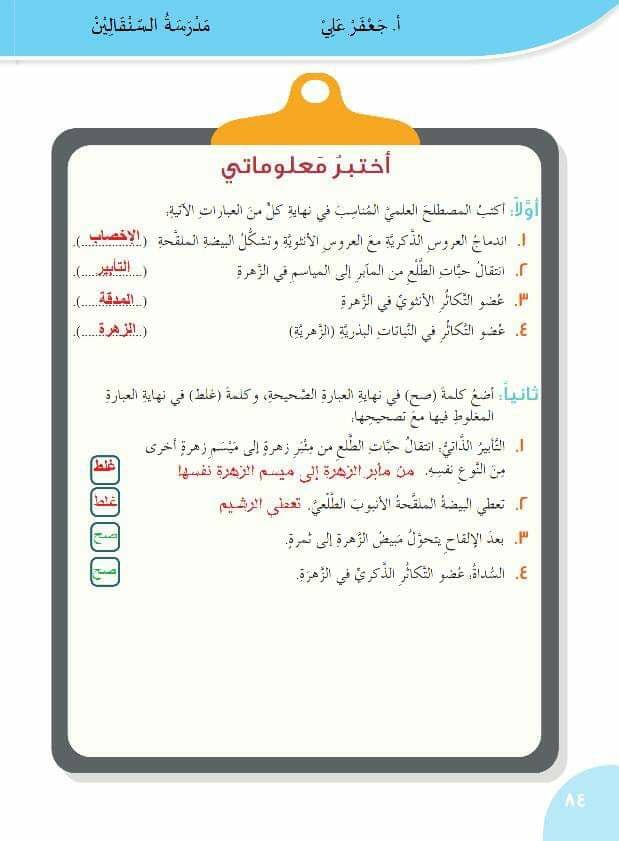 حلول علوم الصف السادس درس نبتتي تتكاثر المنهاج السوري