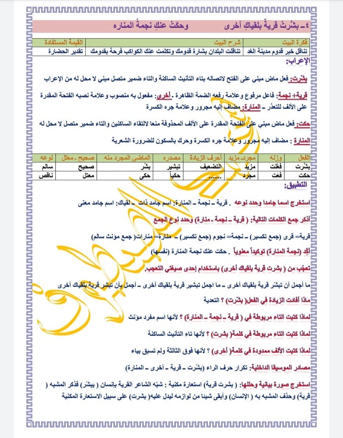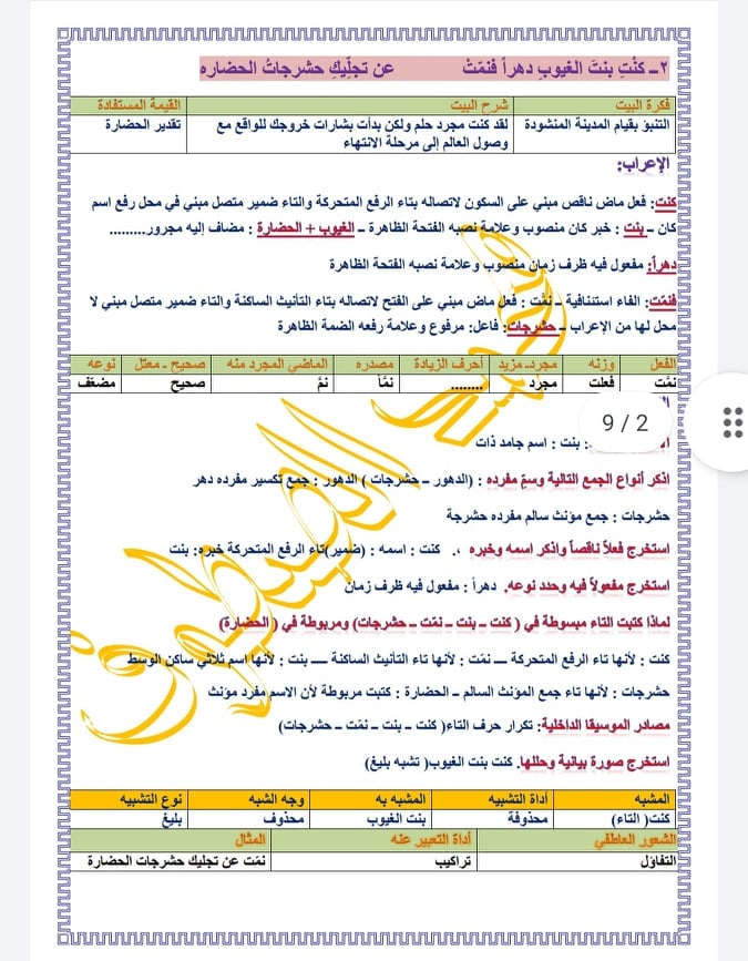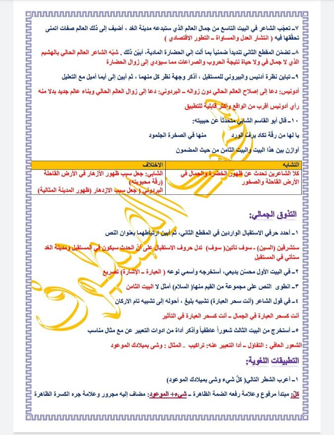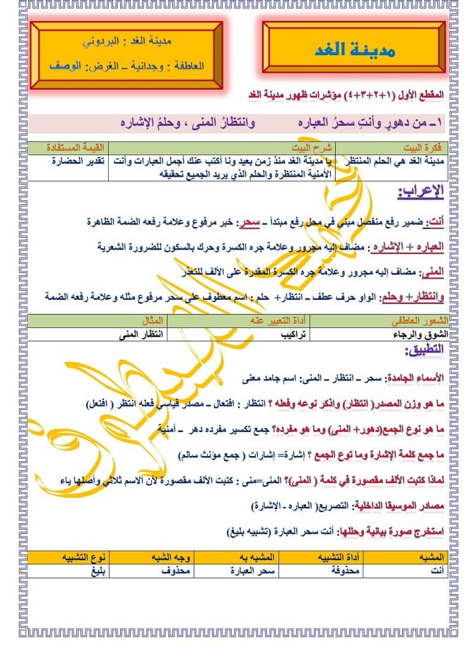 دراسة قصيدة مدينة الغد الصف التاسع المنهاج السوري