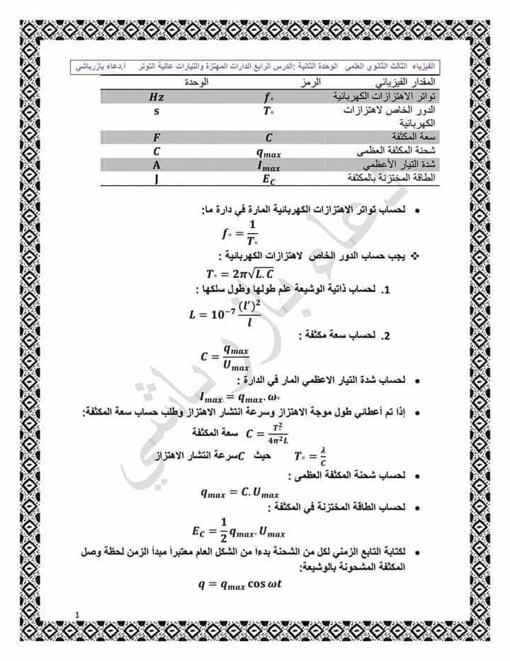 شرح الدارات المهتزة فيزياء بكالوريا المنهاج السوري