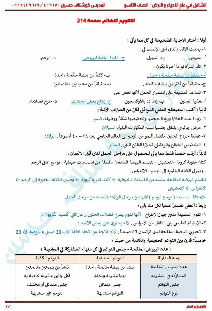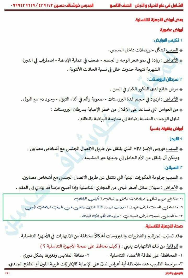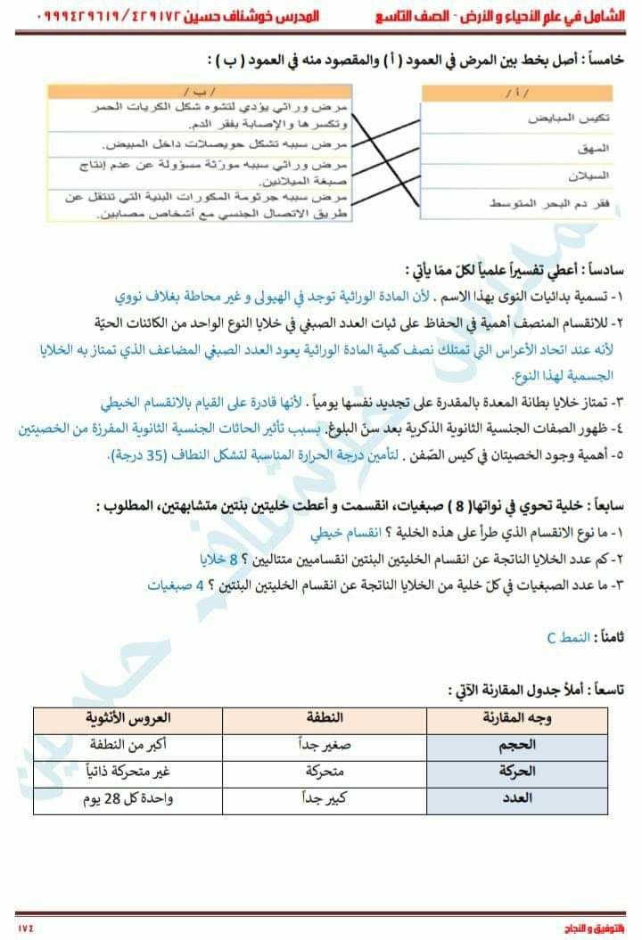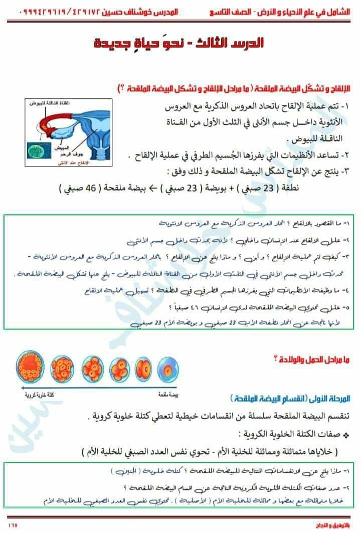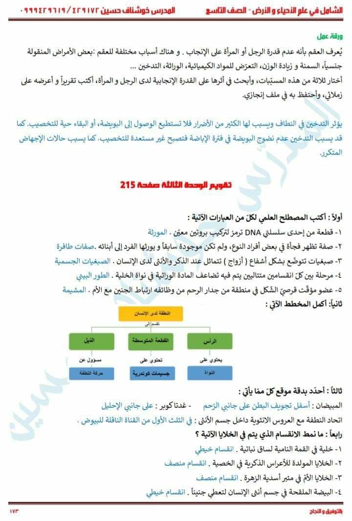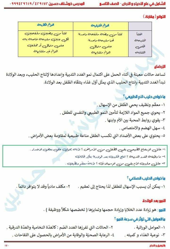 شرح الوحدة الثالثة علوم مع حلول أسئلة الوحدة للصف التاسع المنهاج السوري