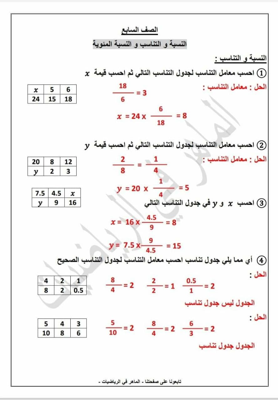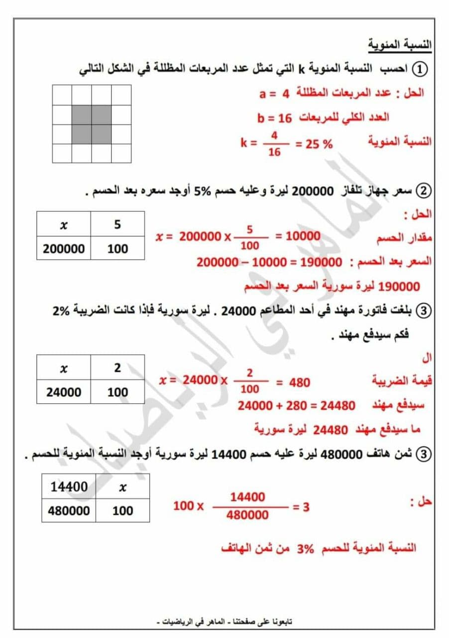 شرح درس النسبة و التناسب و النسبة المئوية للصف السابع المنهاج السوري