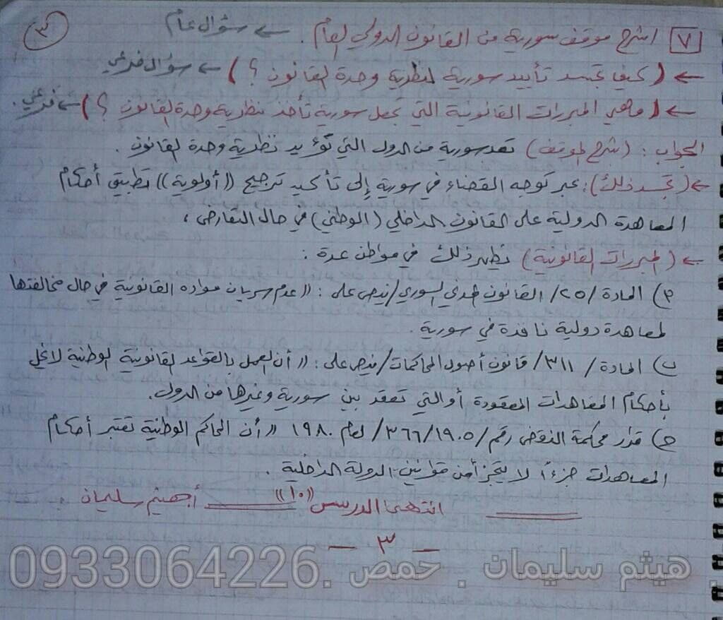 شرح وتلخيص الدرس العاشر تربية وطنية بكالوريا المنهاج السوري الحديث