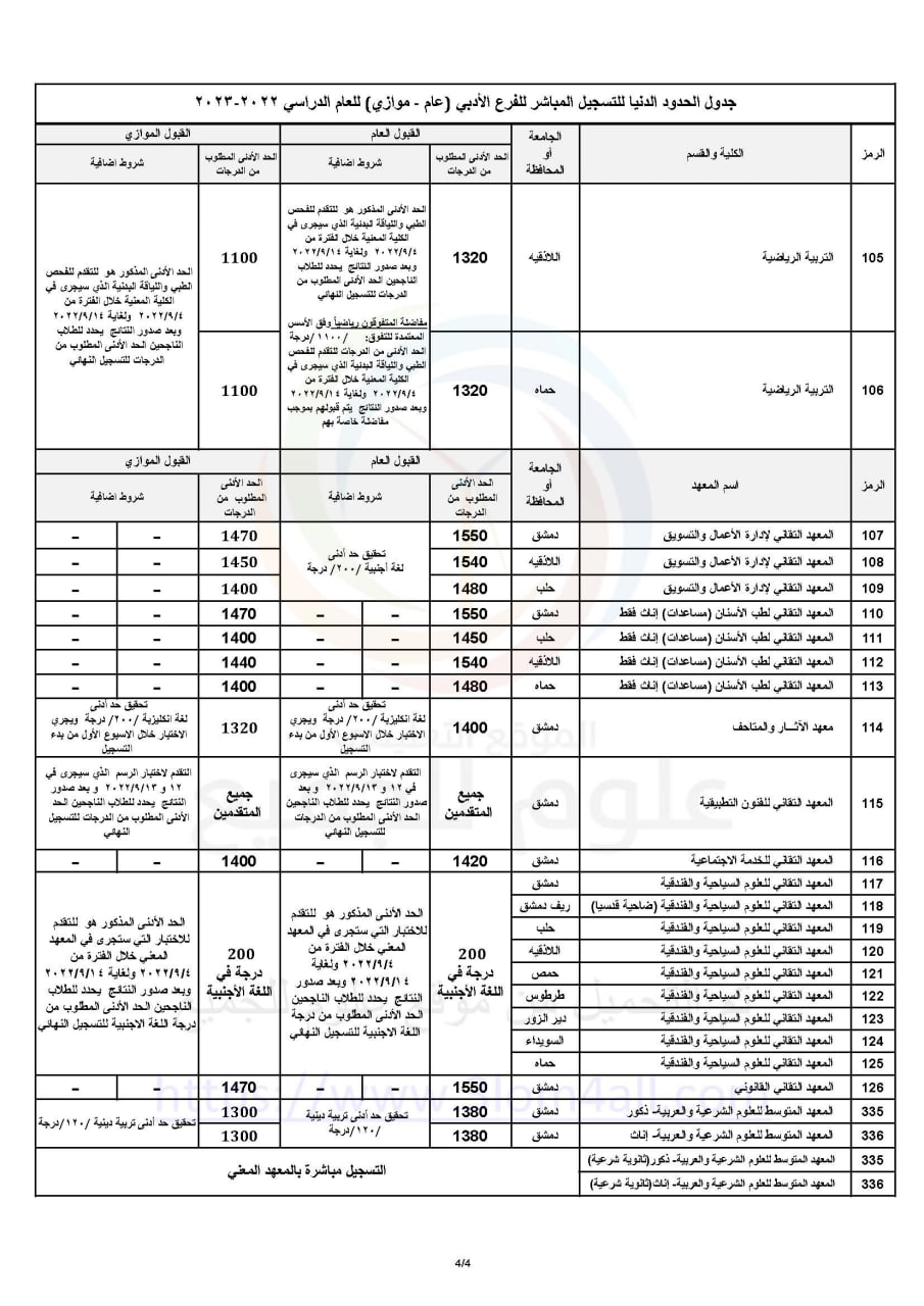 المعدل النهائي للتسجيل المباشر لأدبي يعني اي طالب جايب المعدل المطلوب للفرع الجامعي بيحقله يسجل الفرع مباشرة من دون أي مفاضلة