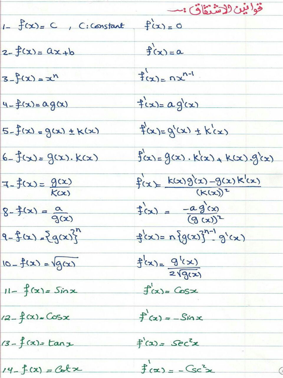 قوانين التابع اللوغاريتمي والإشتقاق بكالوريا رياضيات