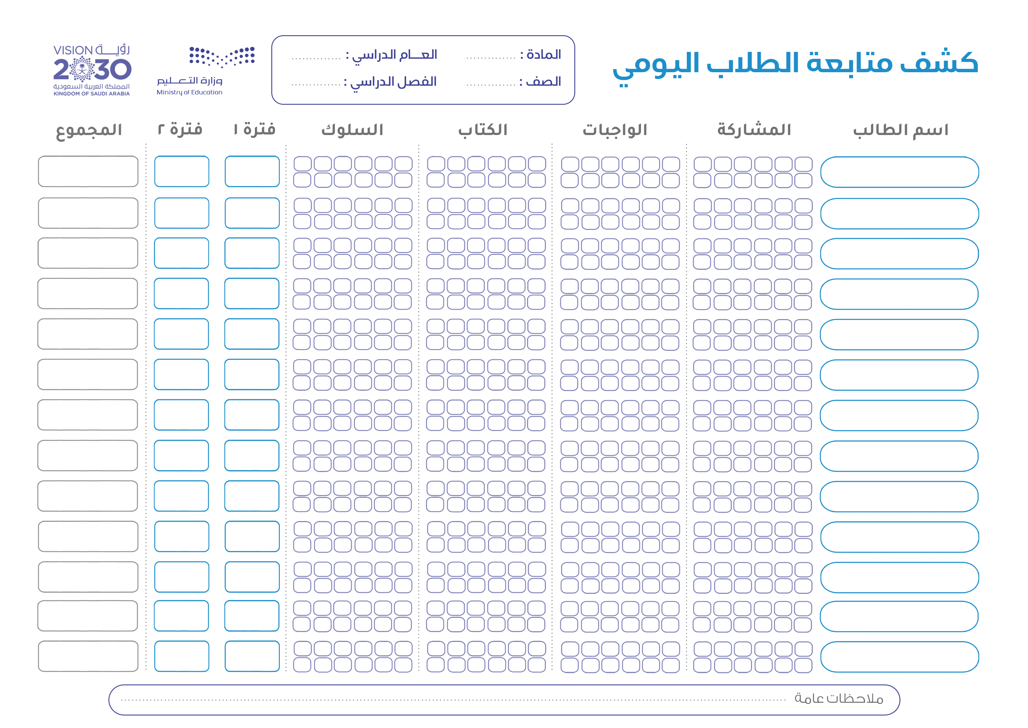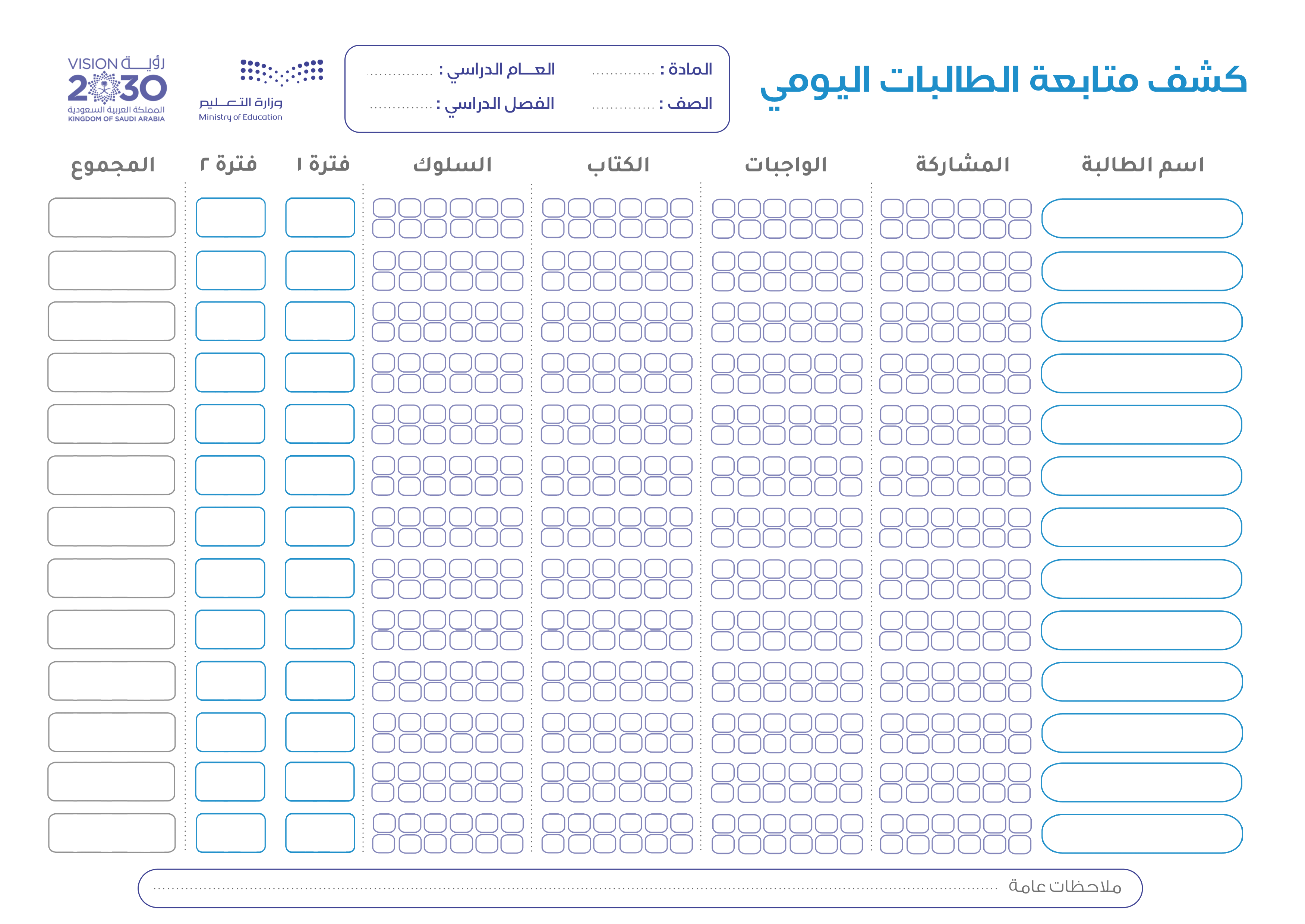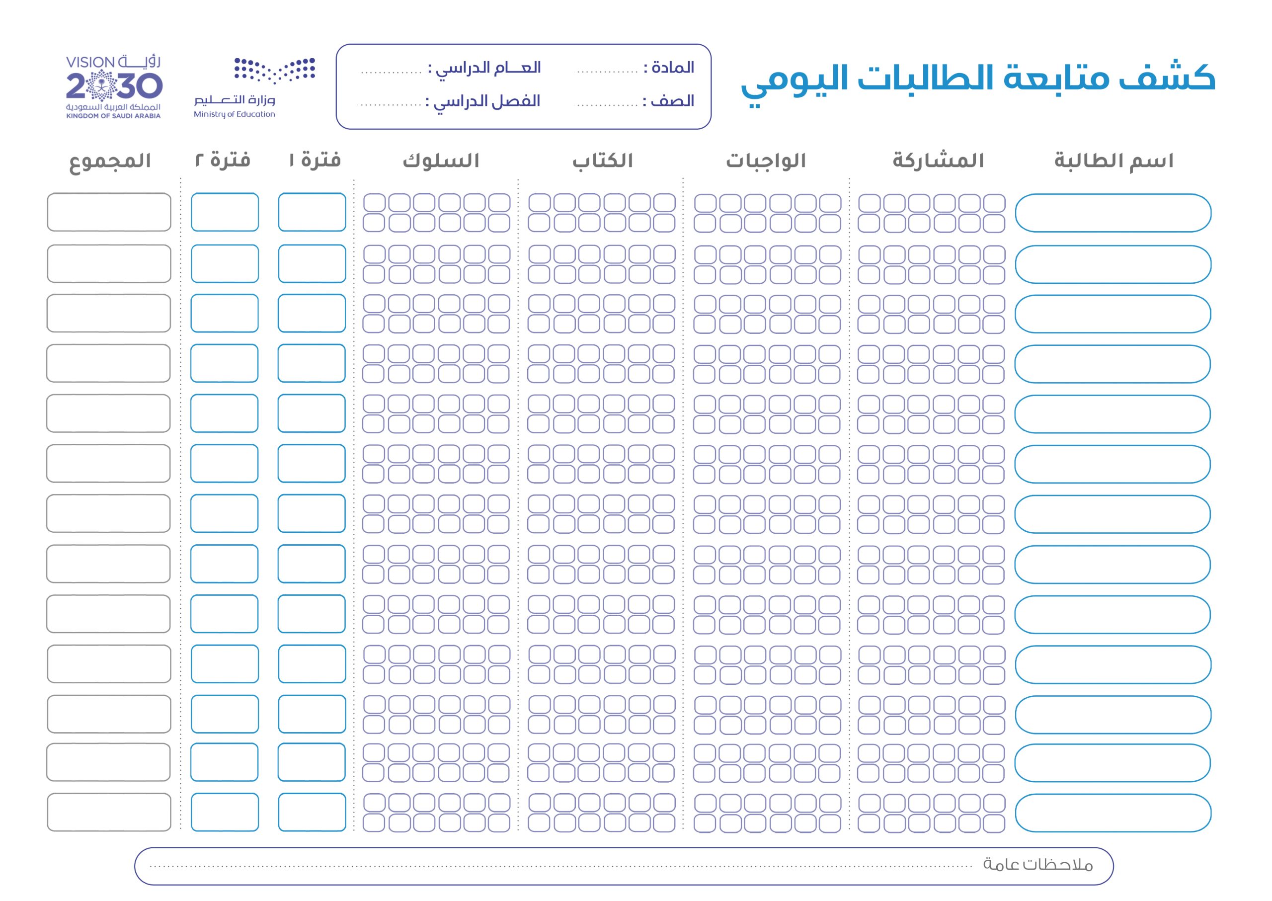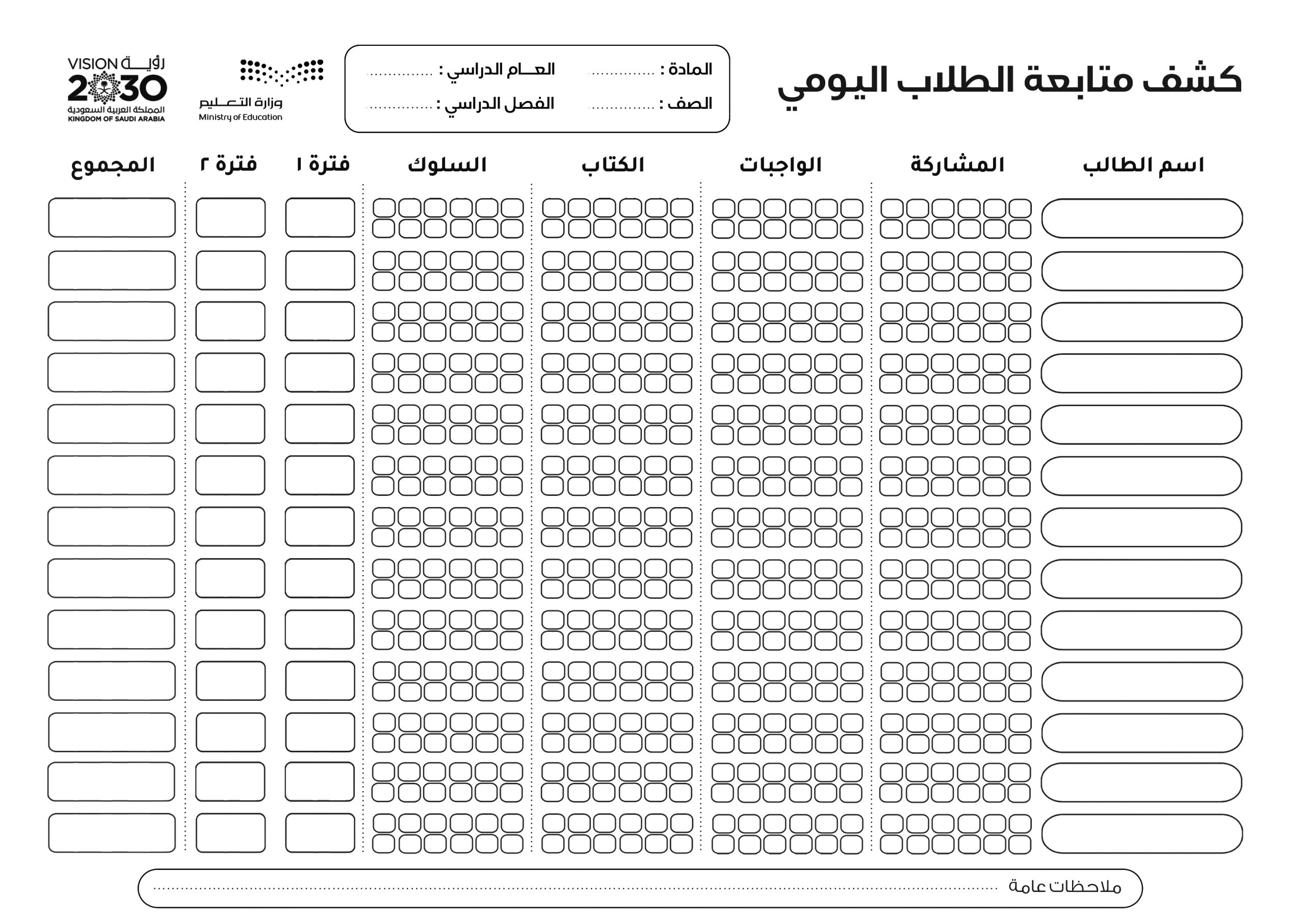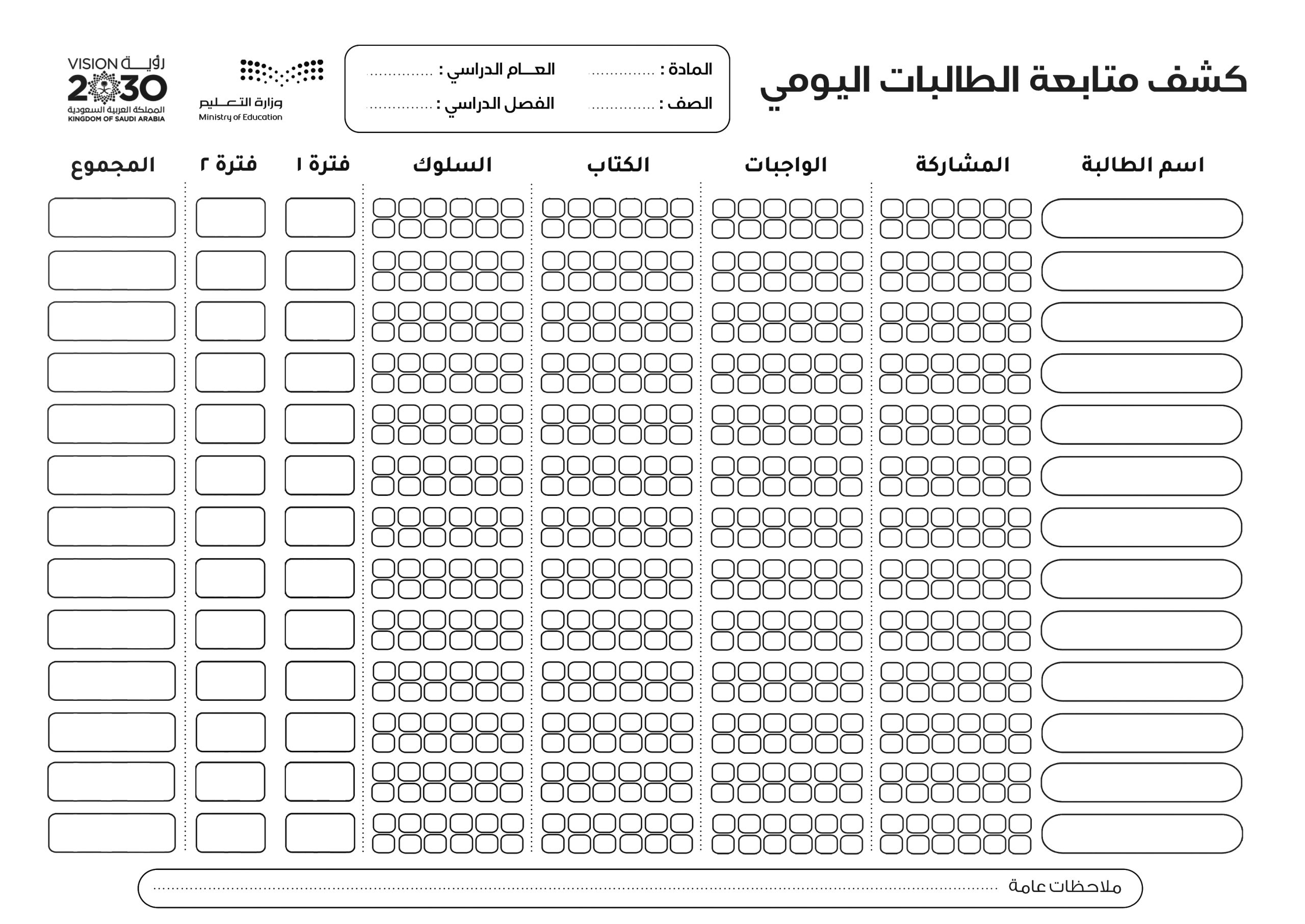 كشوف متابعة للطلاب والطالبات عادي وملون