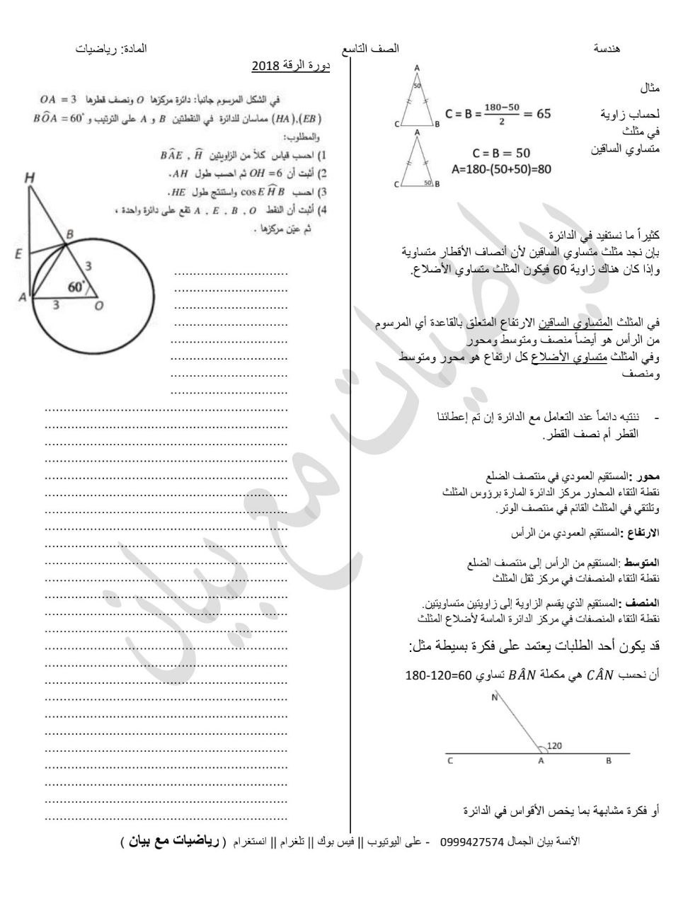 كيف احل مسألة ١٠٠ علامة هندسة المنهاج السوري