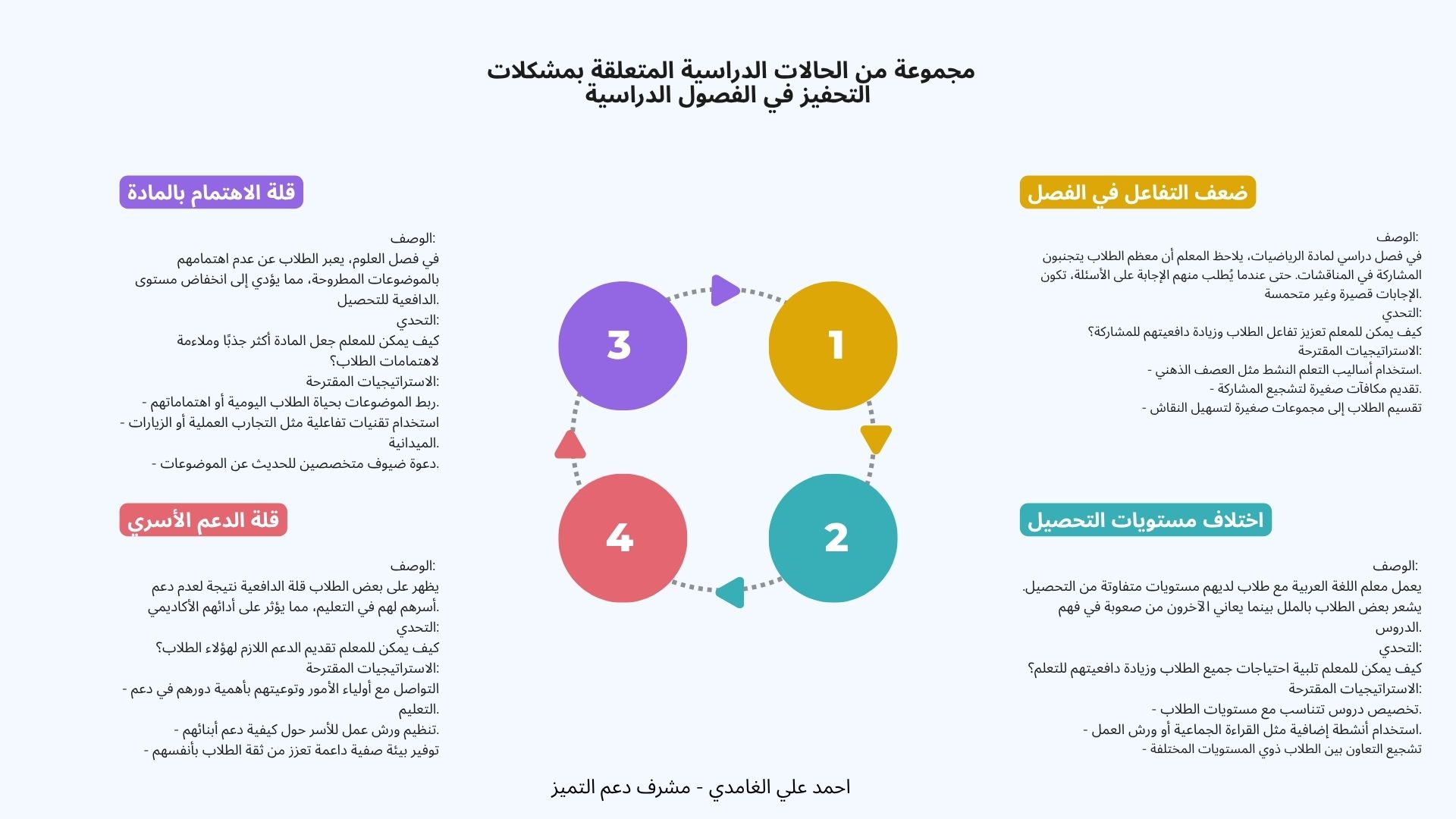 مجموعة من الحالات الدراسية المتعلقة بمشكلات التحفيز في الفصول الدراسية