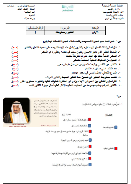 مذاكرة التفكير الناقد 2 محلولة نظام المسارات