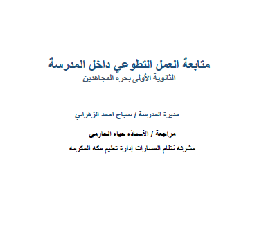 ملف متابعة العمل التطوعي داخل المدرسة وكافة الملفات المتعلقة بالعمل التطوعي
