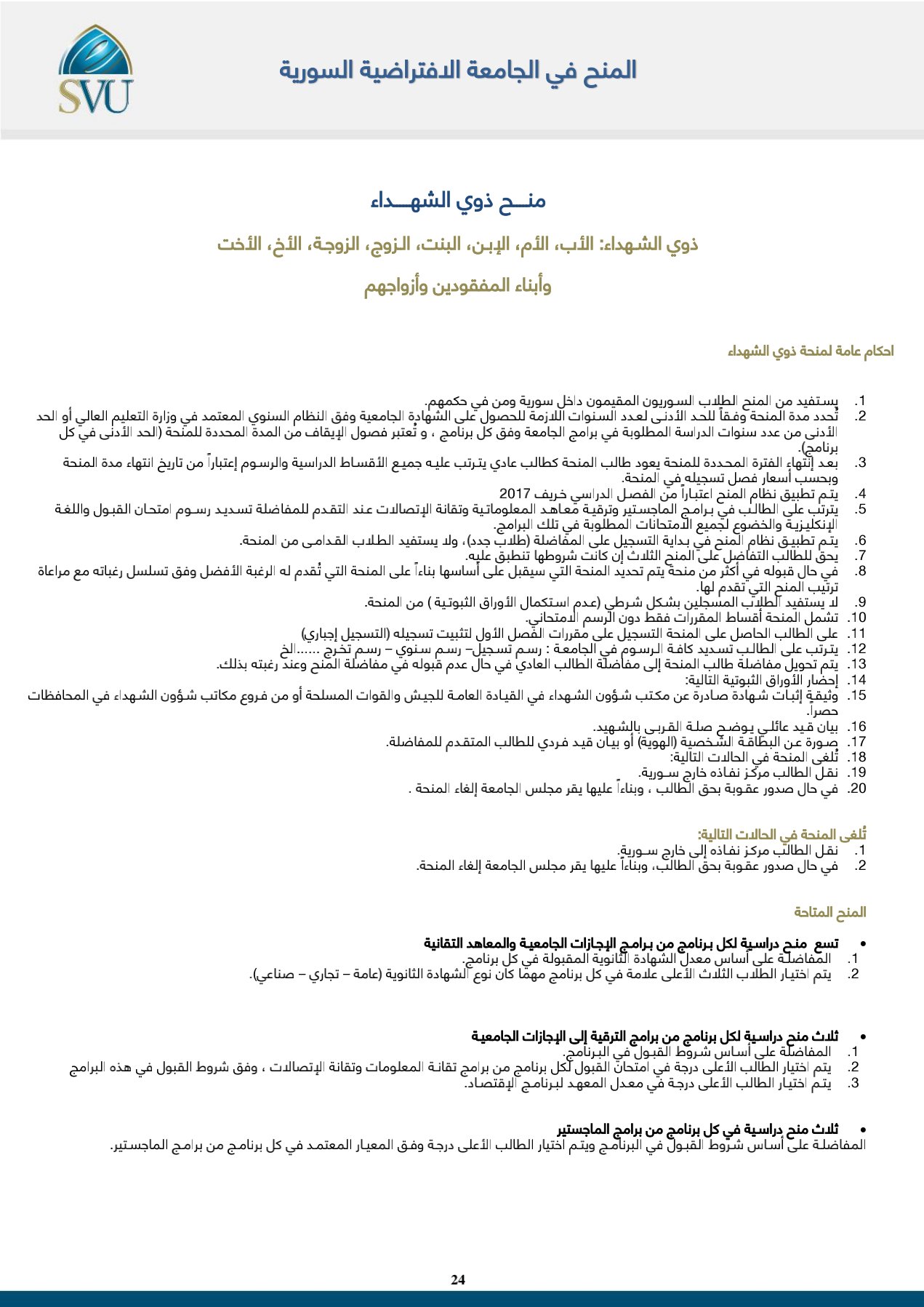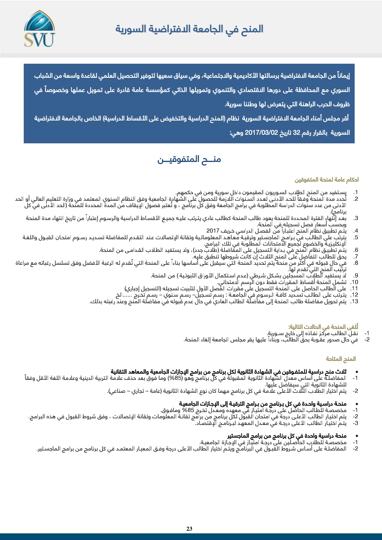 منح الجامعة الافتراضية السورية للعام 2022/2021