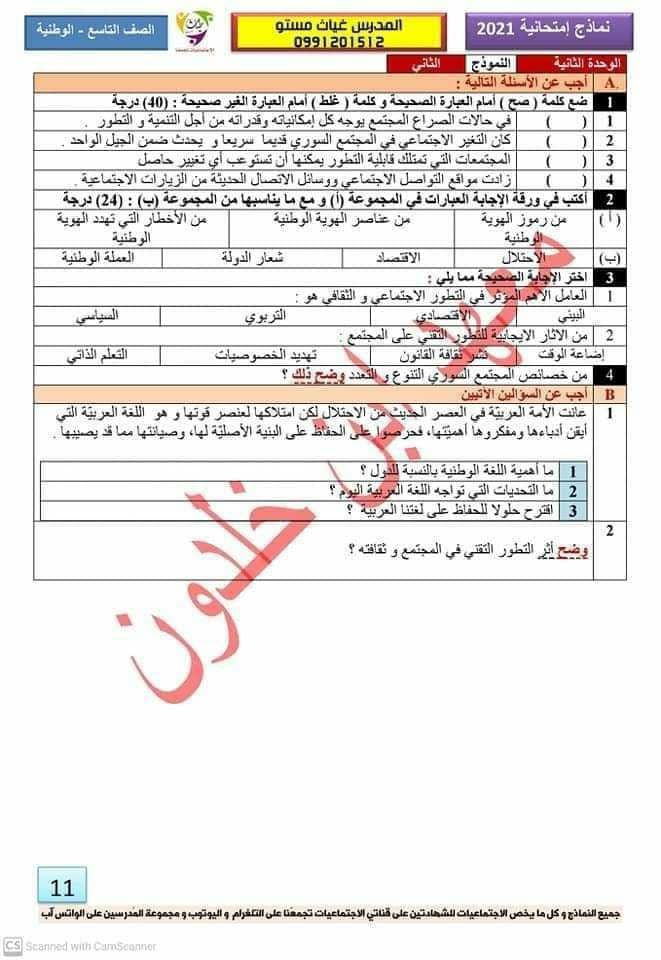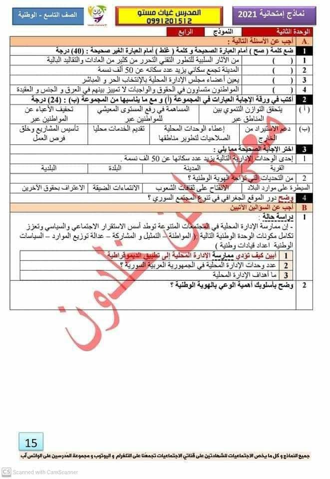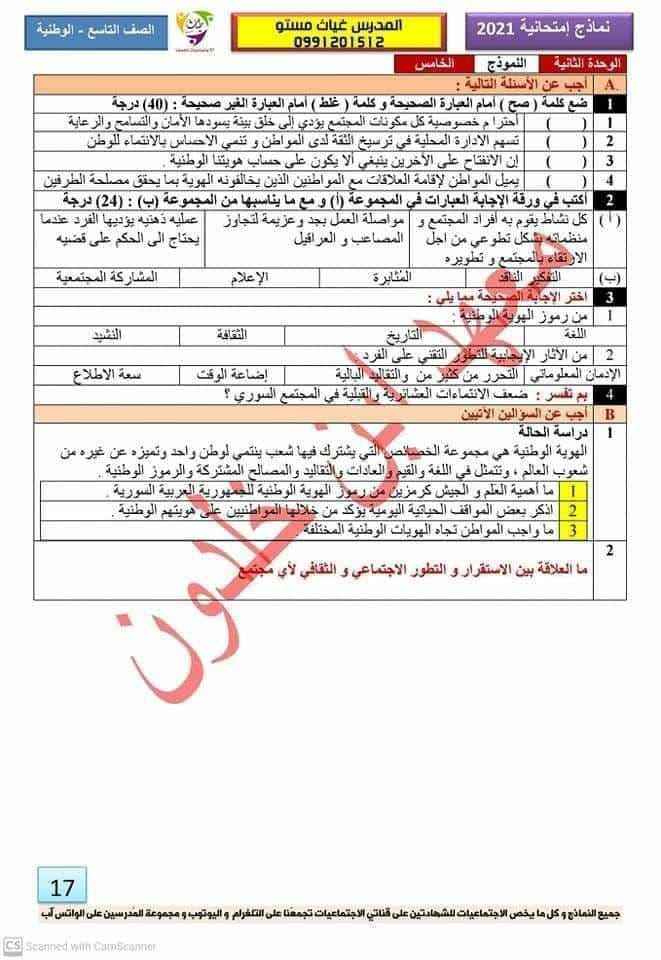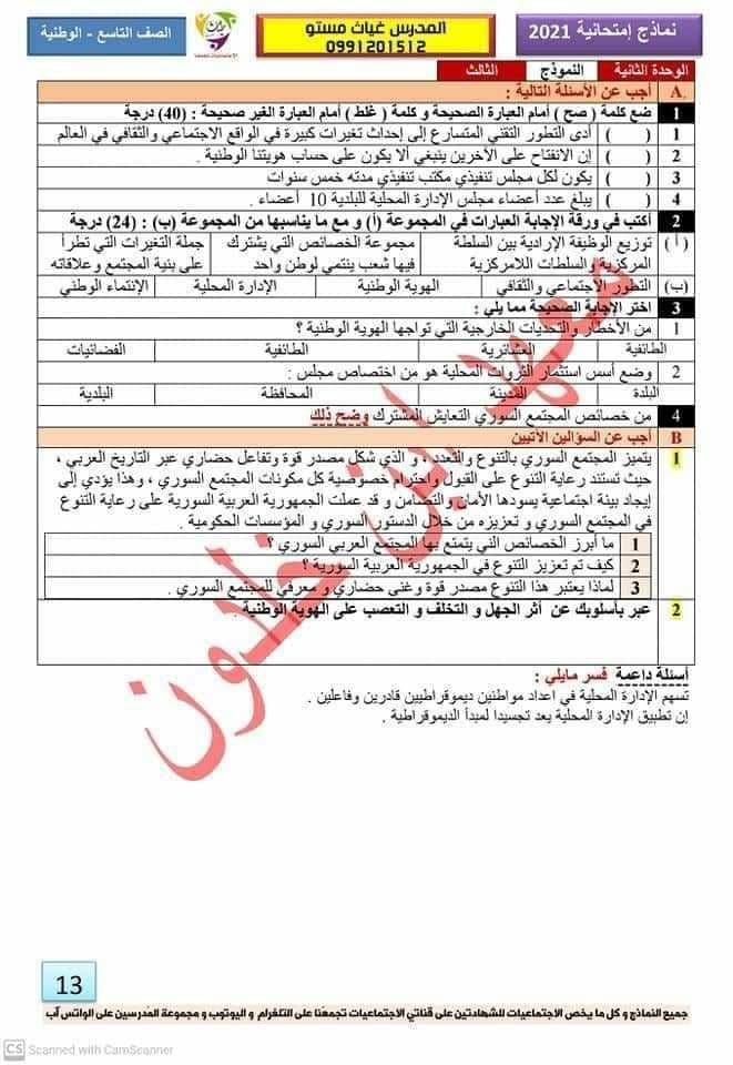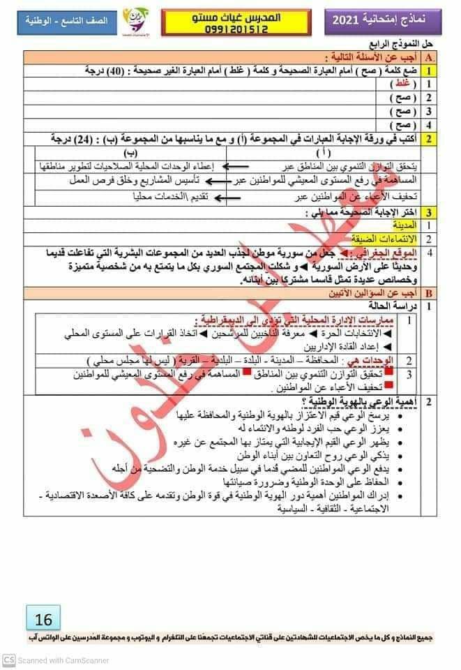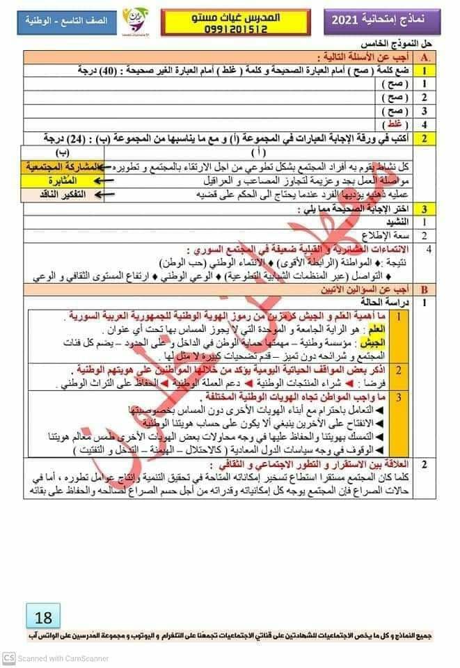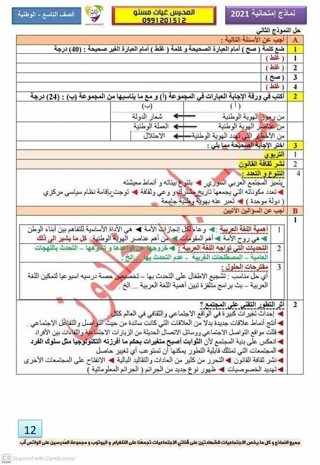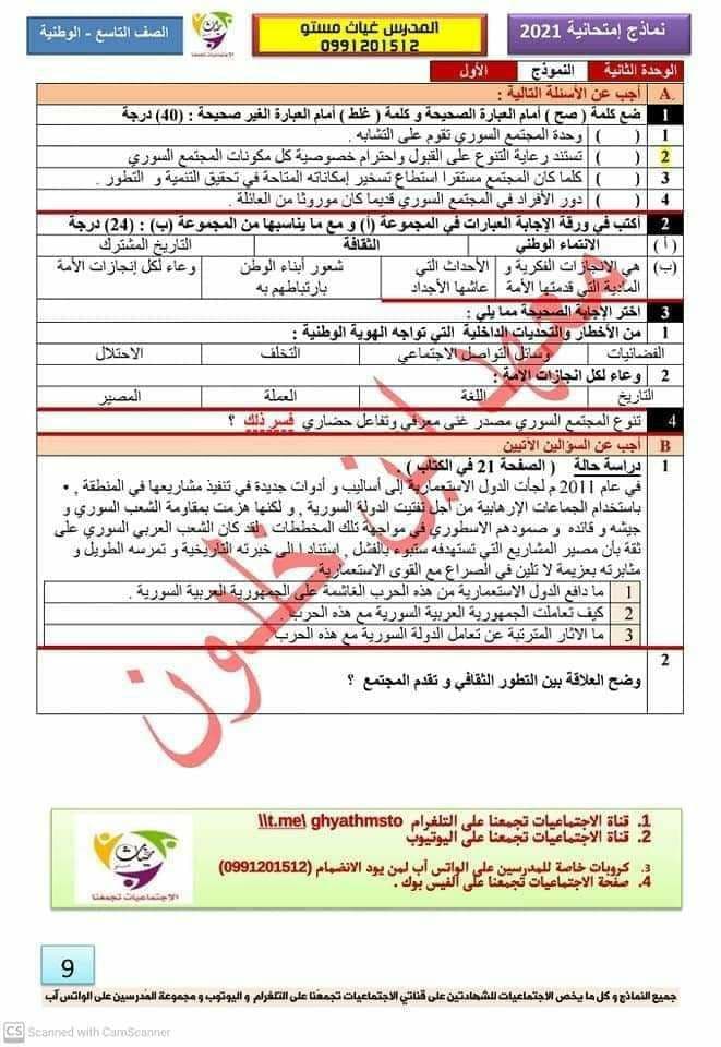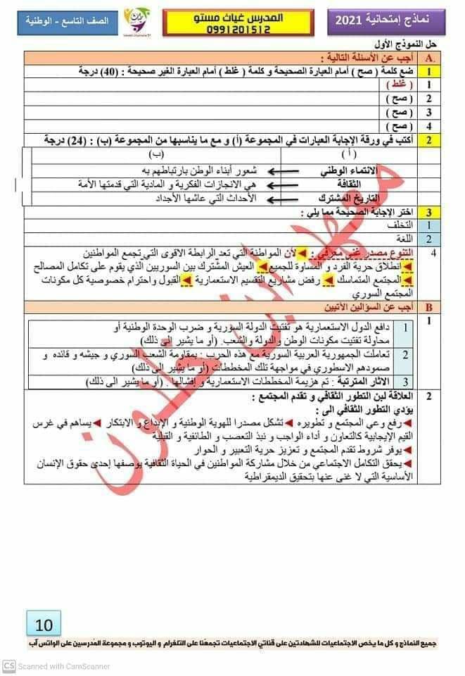 نماذج وطنية محلولة هامة جدا تاسع المنهاج السوري