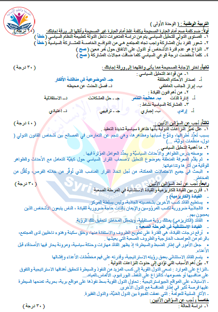 نماذج وطنية محلولة ( 4 )نماذج للوحدات (1.2.3.4) بكالوريا المنهاج السوري