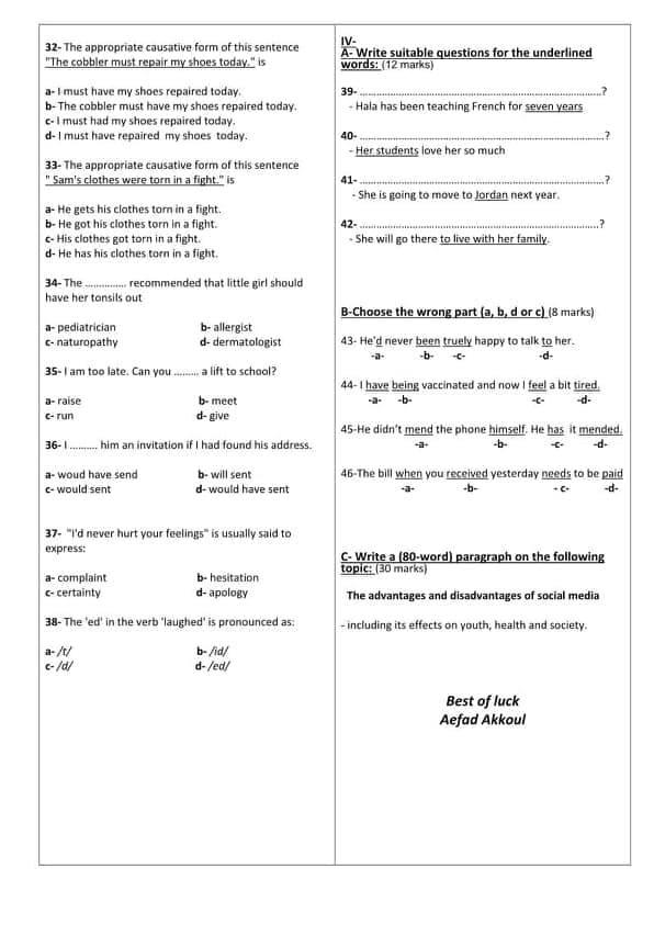 نمط انكليزي سلسلة ايمار بكالوريا علمي للفصل الأول المنهاج السوري