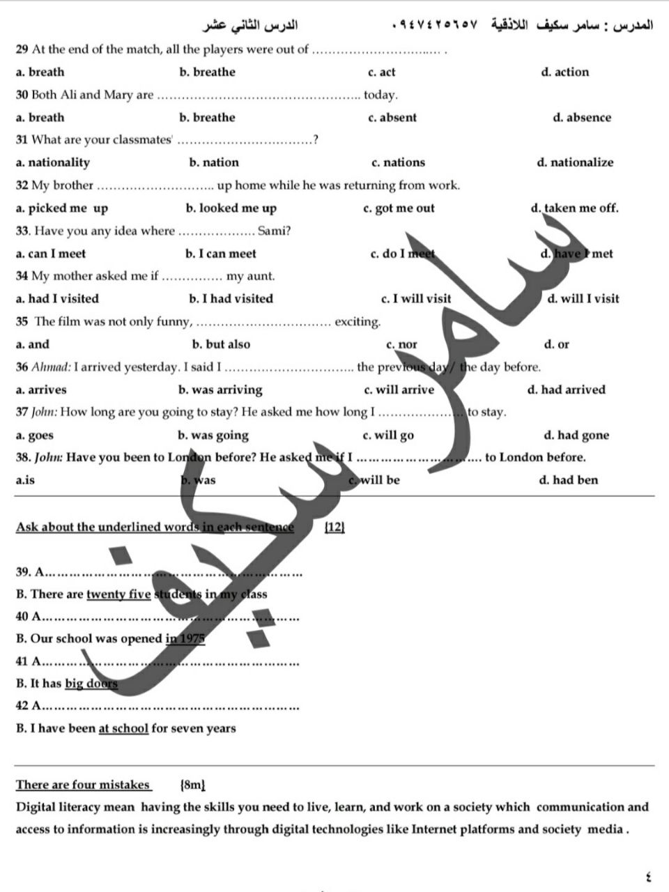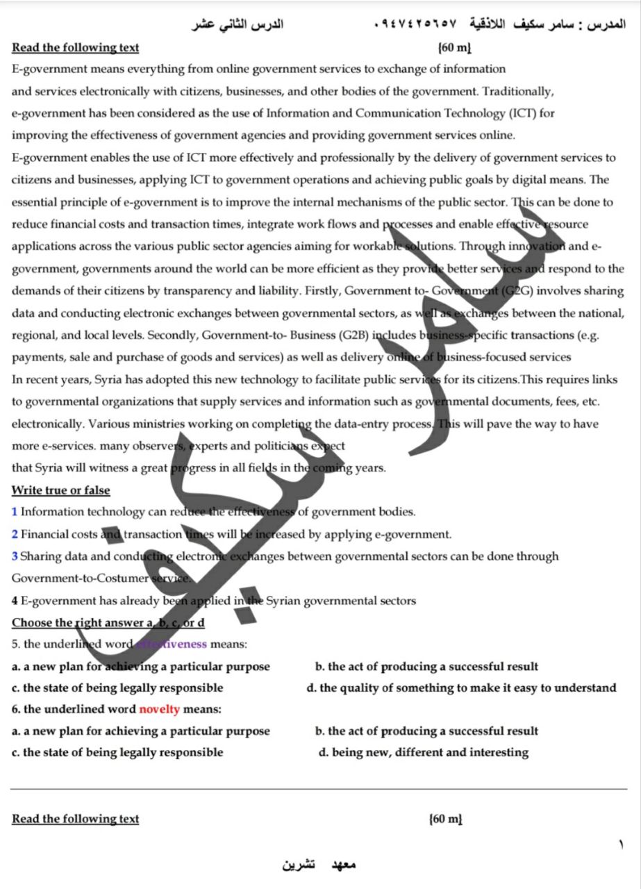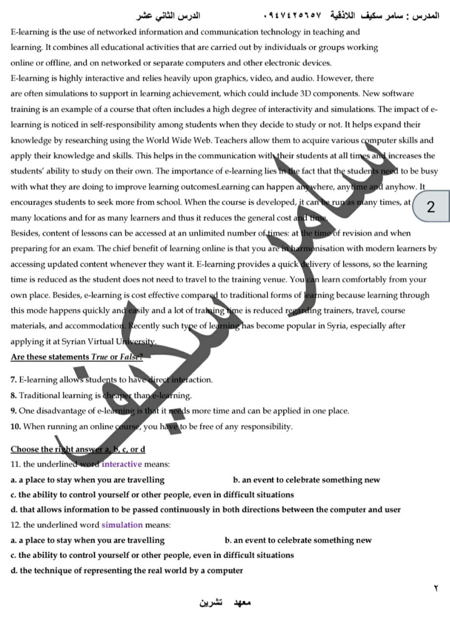نموذج الدرس ١٢ اللغة الإنكليزية بكالوريا علمي المنهاج السوري