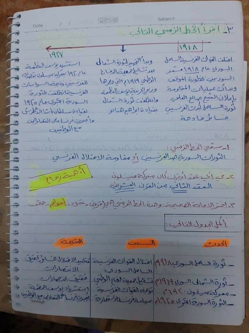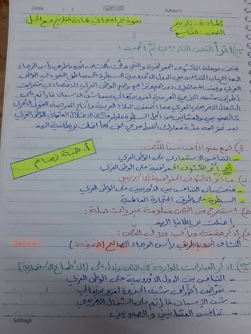 نموذج امتحاني المادة تاريخ تاسع المنهاج السوري