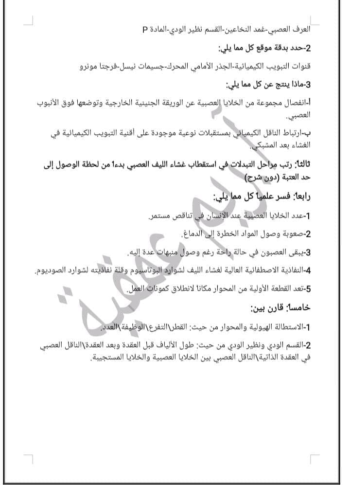 نموذج علوم بكلوريا من الدرس الاول حتى السادس بكالوريا المنهاج السوري