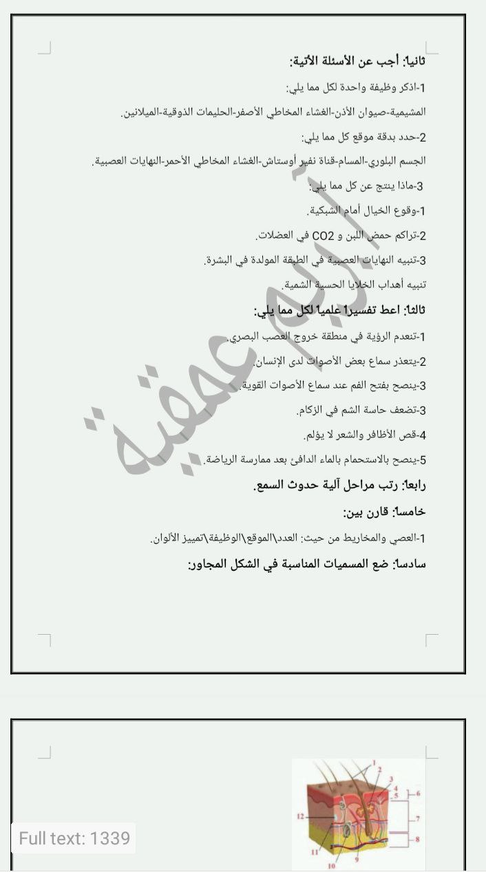 نموذج علوم وحدة الحواس للصف التاسع المنهاج السوري